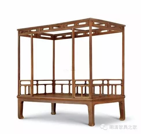 ▲清早期 榉木无束腰马蹄腿架子床
