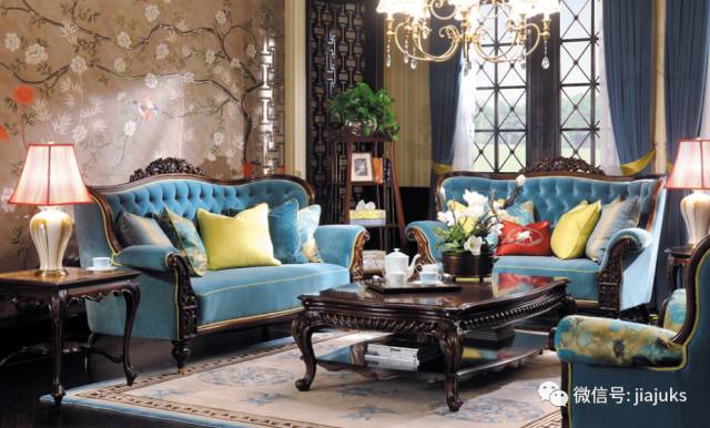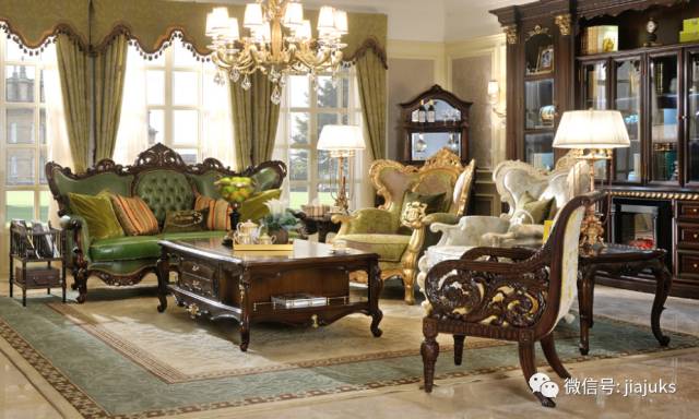 法式洛可可奢华风格客厅,以其轻快纤细曲线草茎与贝壳所组成的复杂节奏,和凸曲线的造型和弯角而形成的雕塑的艺术品,可以感受法国家具古典文化的那份庄重与典雅。