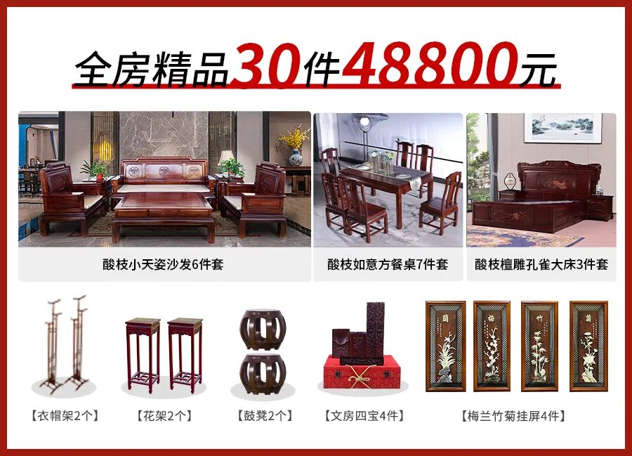 48800买酸枝全房精品30件,尽享品质家居生活美学