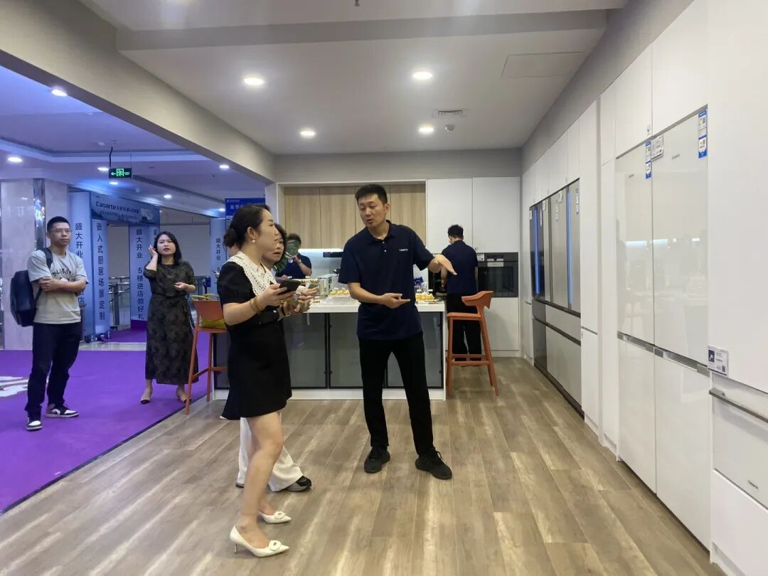温州贝泽贸易有限公司总经理林海晓在开业典礼上做了分享,卡萨帝嵌入式冰箱不仅仅是一款冷冻和储存食品的设备,而是一种生活方式,一种品质的象征。卡萨帝产品通过突破传统冰箱的设计,将冰箱与整个厨房进行了完美的融合,使之成为了厨房的一部分,不仅有着出色的冷藏、冷冻的功能,还能为消费者带来完美的厨房视觉体验。卡萨帝嵌入式冰箱注重细节,追求工艺与精致,每一个边角、每一条线条都经过精心设计,不仅给消费者带来了便利,更给消费者带来了贴心的服务。最后,再次感谢各位的到来,感谢大家长期以来对卡萨帝的支持和信任。卡萨帝嵌入式冰箱店的开业,标志着我们在家具市场的重要突破,也标志着我们未来将向更高的目标迈进。