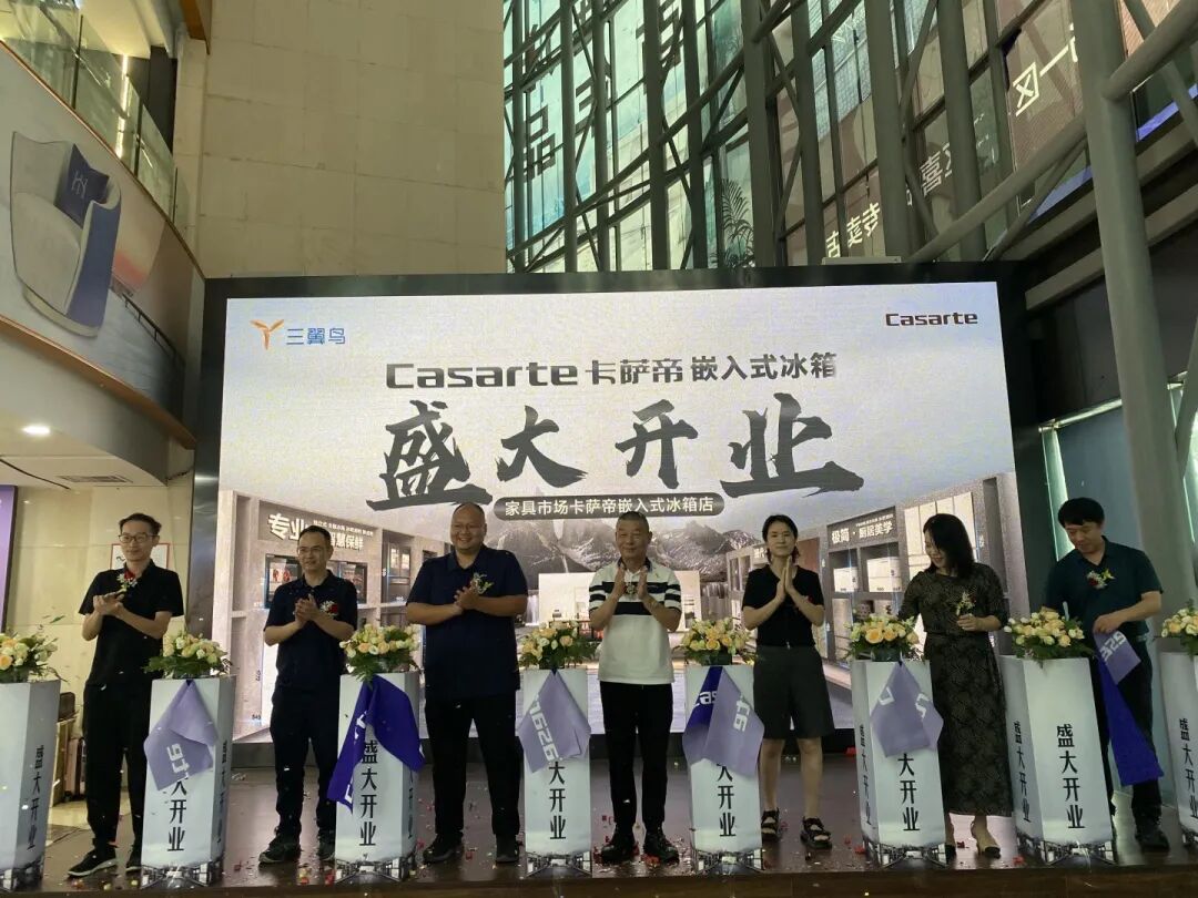 2023年07月29日,温州家具市场卡萨帝嵌入式冰箱店盛大开业。温州市家电协会秘书长吴玉飞、温州家具市场董事长助理金玲、温州家具市场营销总监闫勇、海尔智家(浙东南)大区制冷产业总监曹江民、海尔智家(浙东南)大区三翼鸟智慧厨房总监胡盛东、温州贝泽贸易有限公司董事长黄毅、温州贝泽贸易有限公司总经理林海晓以及温州地区各市区合作伙伴出席本次开业典礼。并在开业典礼上举行了剪彩仪式。