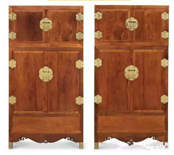 2011年11月,中国嘉德在“秋季拍卖会姚黄魏紫——明清古典家具(二)”专场,以RMB2990万元的价格拍出了“明末清初·黄花梨大四件柜(成对)”。这一对十分精美的大柜,很早就流往南美,故免于难。几经周折,才入藏美国加州中国古典家具博物馆。