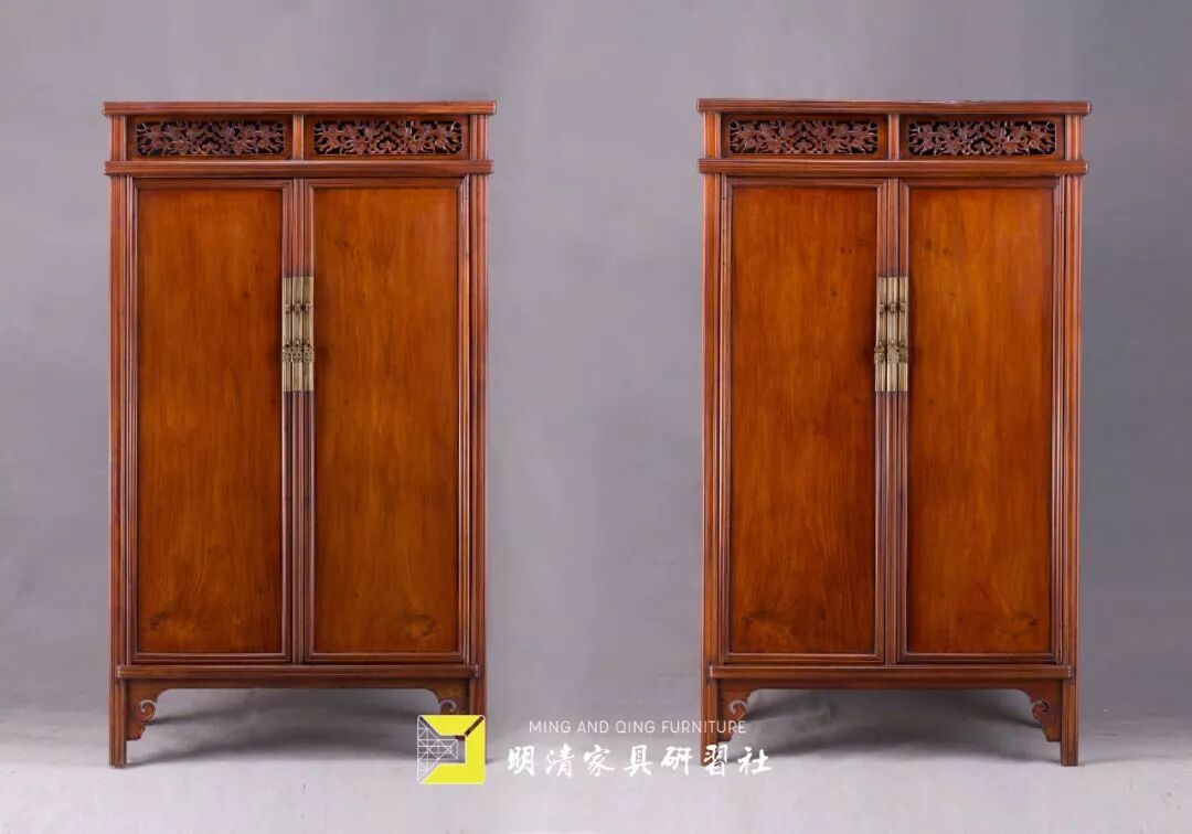 除了力学方面的考虑外,首先还是考虑黄花梨家具的审美,柜门及案心多采用弦切且纹理对称的黄花梨,当然也有不少径切直纹的。