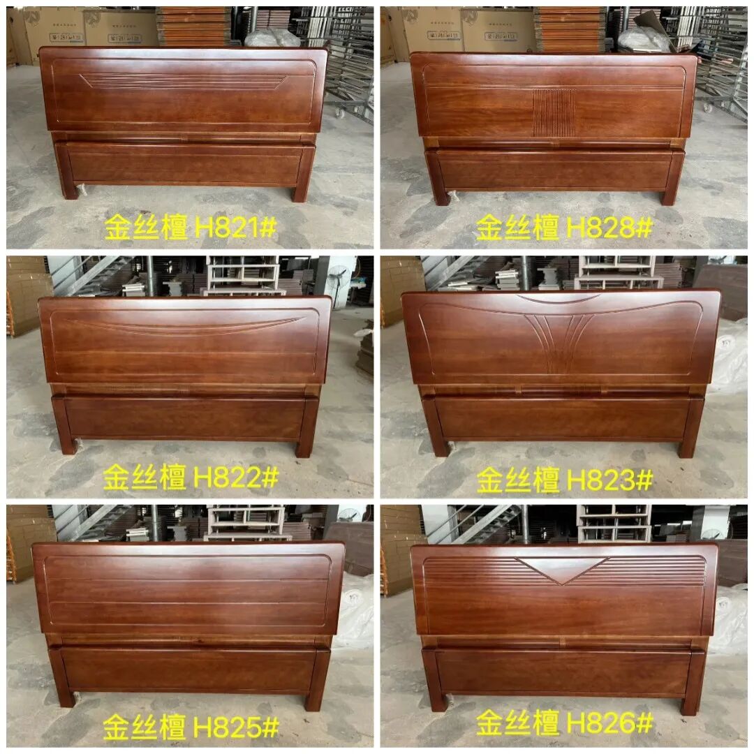 【款式】:紫金檀木实木实心脚大款系列 【价格】:批发价760/780,会员价630/750 【规格】:1.5m/1.8m,紫金檀色 【标配】:3×20桉木床边、3×6x7杉木大床子 【选配】:5x17实木床边配5x6x7床子加130、卡槽床边配油漆床板420、床头柜加90 【发货地】:江西南康