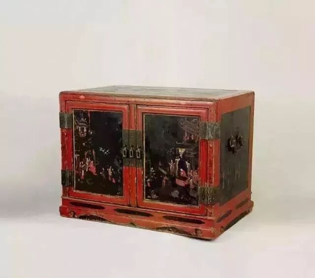 明天启 朱黑漆彩绘描金金瓶梅人物纹箱座书橱
