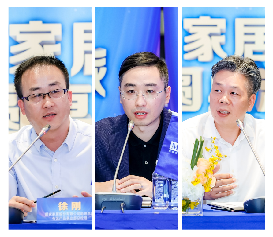 (左)顾家家居股份有限公司助理总裁、布艺产品事业部总经理徐刚;(中)依思蒙沙总经理李烨;(右)左右家私有限公司常务副总裁洪晓山