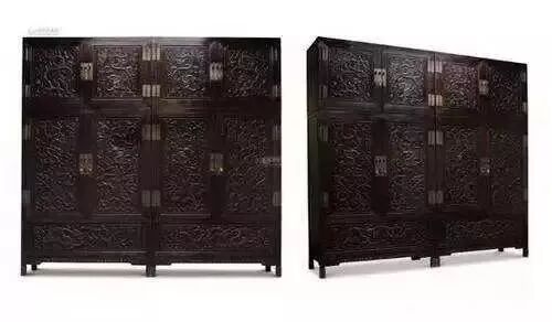 TOP 1:清代紫檀高浮雕九龙西番莲纹顶箱式大四件柜。