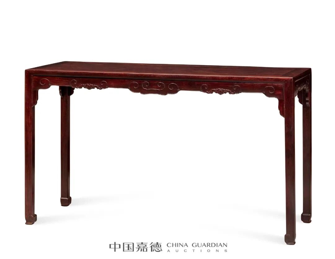 115×125×75 cm成交价:RMB 57,500,000中国嘉德2011秋季拍卖会乾隆之后紫檀家具的减少,除了国力的衰弱外,还因原料的短缺。早在康熙年间,有记载康熙曾派官员赴印度采购紫檀木,但当时印度的木料砍伐严重,已经没有可供使用的木料了,此后清宫廷就没有采购紫檀木料。而且在清代有一条不成文的法律,不管民间有谁囤积紫檀木,一经发现都要收购入宫。因此乾隆时期大量紫檀家具的原料,一部分来自前朝遗留,另一部分来自民间采购。Lot 2946