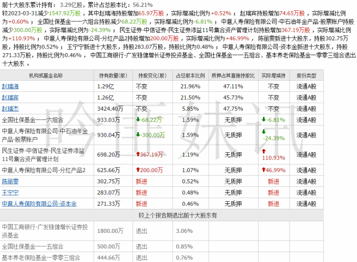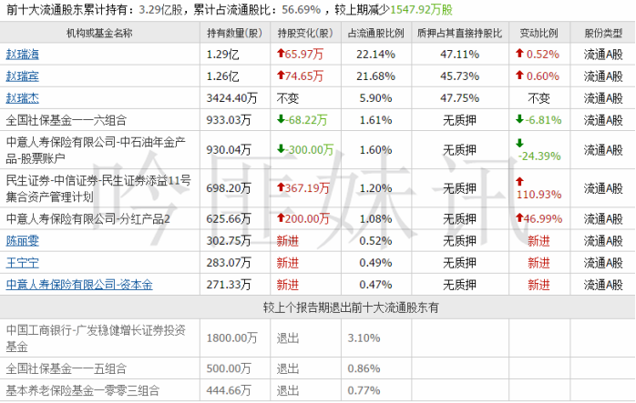 (数据来源:同花顺)赵瑞海、赵瑞宾和赵瑞杰系兄弟关系,为一致行动人。同时跻身前十大