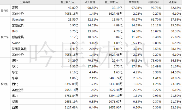 (资料来源:同花顺)(2)各项业务占⽐(境外收入占比70.35%)2022年报数据