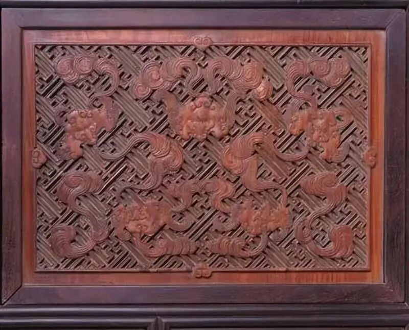 清 紫檀木雕万福纹柜格(局部) 故宫博物院藏