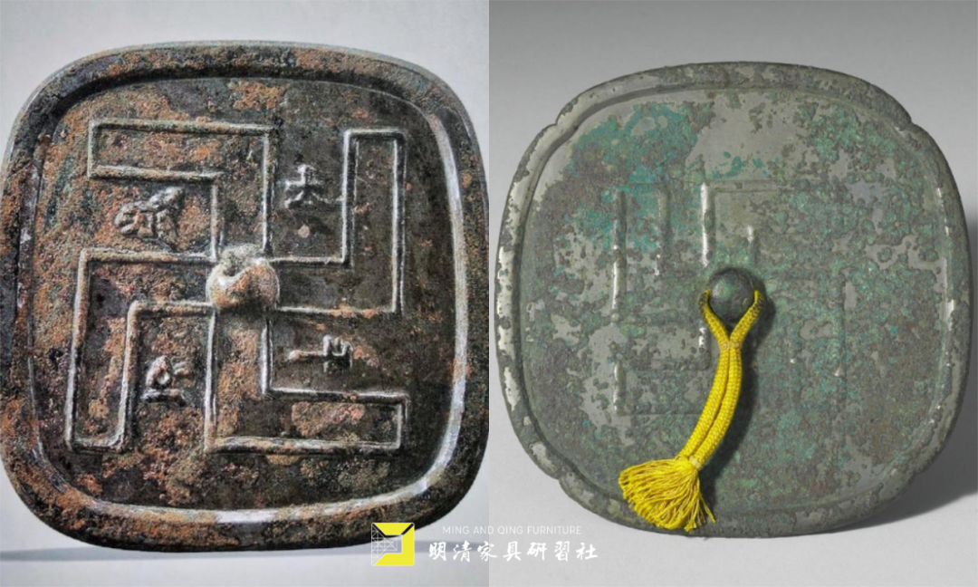 这种卍字镜的特征是打磨光滑的镜背上凸出一个硕大醒目的“卍”字,因制作精良、简明大气,还颇有宗教气息而给人庄重肃穆之感。