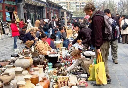 去一趟潘家园兴许还能练练英语,经常看到老外左手抱个瓶子,右手卷个画轴,还蹲在摊儿前跟卖家讨价还价。