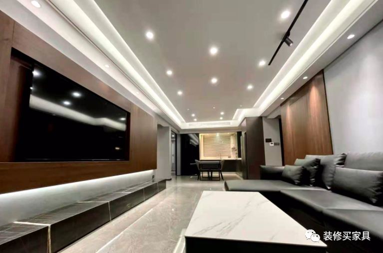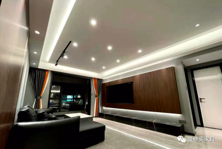 大家可以看一下是不是没有感觉顶上一群发光的小眼睛正刺眼的看着你灯带离墙没有窗帘盒的感觉,灯光分布很有层次也不刺眼。