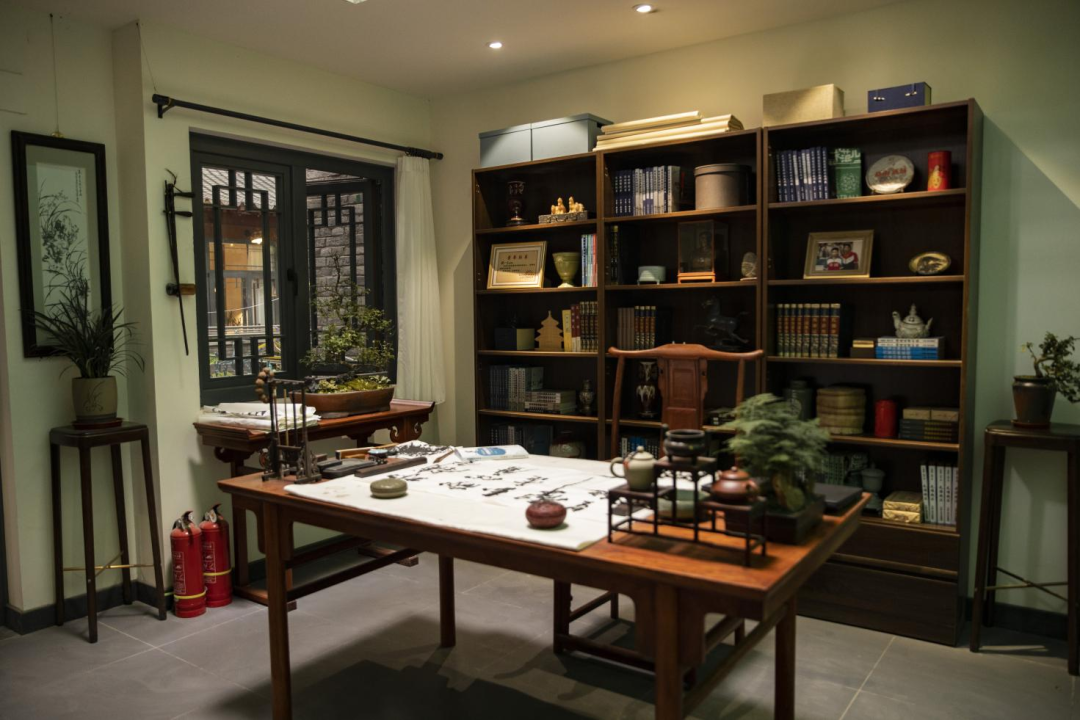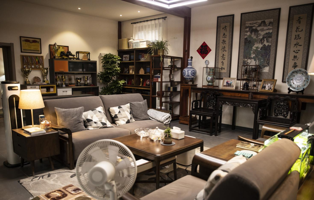 (剧集中天坛家具陈设现场图)例如,在某一集中,由刘佩琦扮演的程一凡老爷子为了“捉弄”儿子程功,以“搬家具”的借口让程功背着龙顺成的红木家具到处晃悠。这过程中展示了龙顺成红木家具用料扎实,器型美观等特点。能够完成沉浸式场景营销还有赖于天坛家具旗下全系品牌矩阵,覆盖了包括古典红木家具、新中式家具、现代家具、整屋定制家具、办公家具以及门窗建材,几乎可以承包中国人各种生活、工作场景。其次,场景情感加持。成功的人设能够给影视剧作品带来更多吸引力,而品牌IP营销更是如此。在冬奥一家人的家具陈设设计中,天坛家具不仅做到了场景与故事情节、人物设定的融合,更做到了反向向剧集赋能。例如,在四合院的中堂设计中,并没有一味追求堆料红木家具,而是采用了新中式国韵京典实木沙发组合搭配,凸显了中青年一代对审美与舒适的双追求;而在第三代少女少年的卧房设计中,则通过细节展示了00后对个性化的强烈需求。在剧集中,程一凡老爷子拥有的中式书房也是情感最为充沛的场景之一。该书房使用了龙顺成的花梨木画案,以及明式四出头官帽椅作为核心,选配古典红木条案、花几以及新中式书架,营造出古香古色的中式美学书房。但这个书房不仅是老爷子沉静心境的场所,也是二代子女成长的场景:他们从小在书房中学习成长,长大后在书房与父亲沟通交流,女儿程凤甚至在书房起步了自己的直播事业。可以说,这个拥有百年京作技艺传承的红木家具的书房,也见证了一家三代在生活、工作的传承,其中蕴含的浓浓家庭气息更增加了人对龙顺成中式家具的好感。