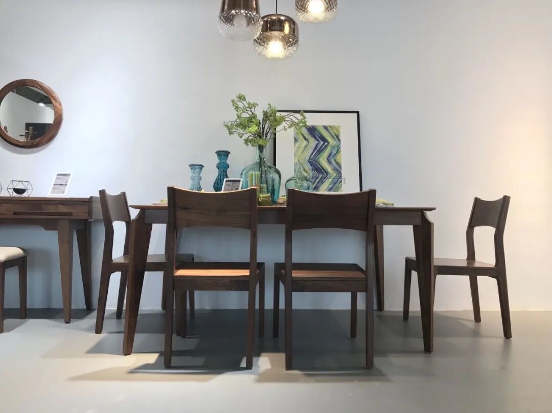 在当下流行的装修风格中,适合用实木家具的有——中式、美式、北欧、简约、日式风格等,其中中式与美式风格一般选用深木色的实木家具为主,比如黑胡桃、红木等;而北欧、简约与日式风格则是以浅木色的实木家具为主,比如白橡木、白蜡木、橡胶木等。7、实木家具要与定制家具木色统一: