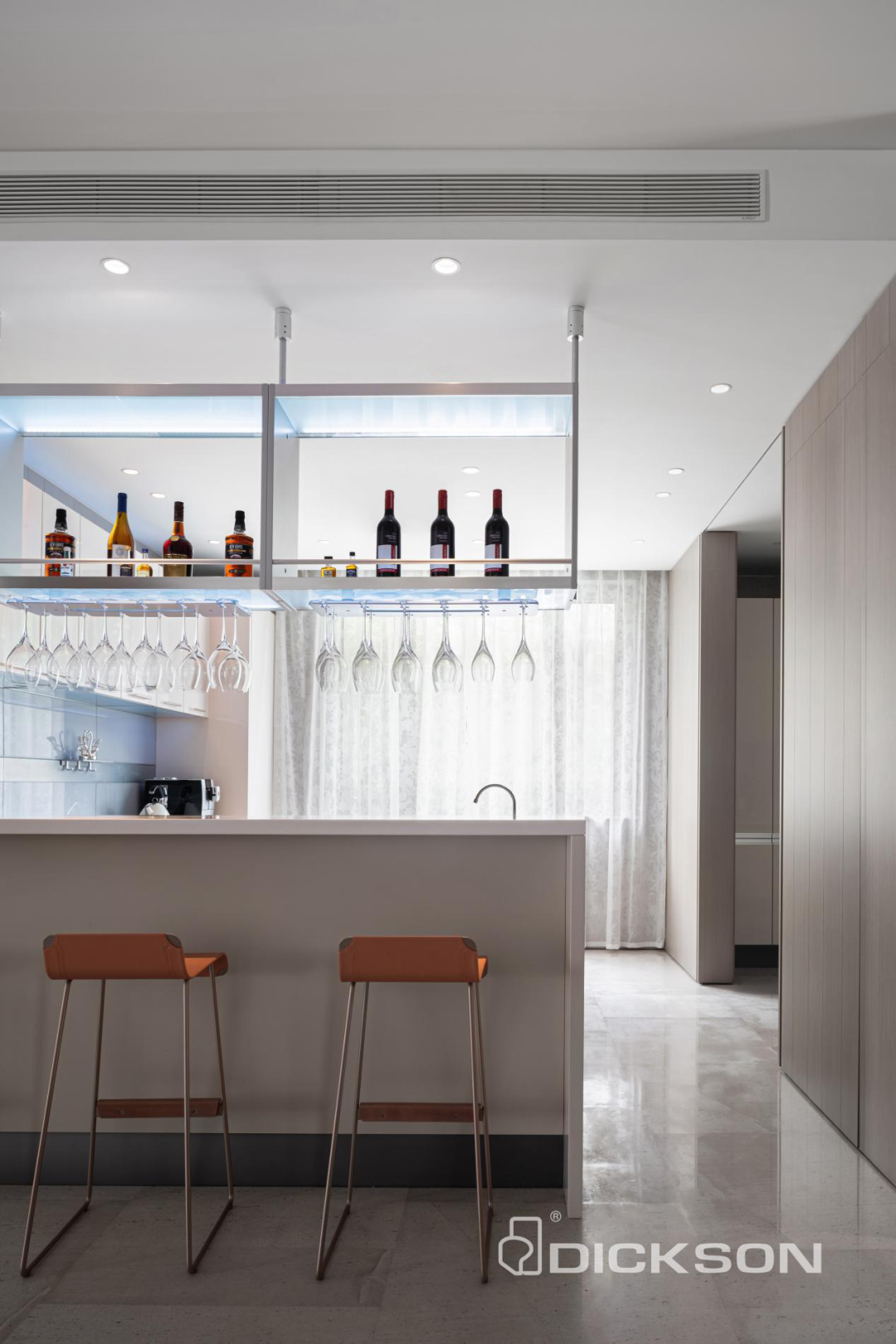 餐厨空间,按面积4:6划分的中西厨彼此独立又相互贯通,中厨以烹饪为主,西厨又可以称为多功能色生活区,配备了时尚吧台、橱柜,既可以是家人休闲小憩的地方,也可用于接待亲朋好友。