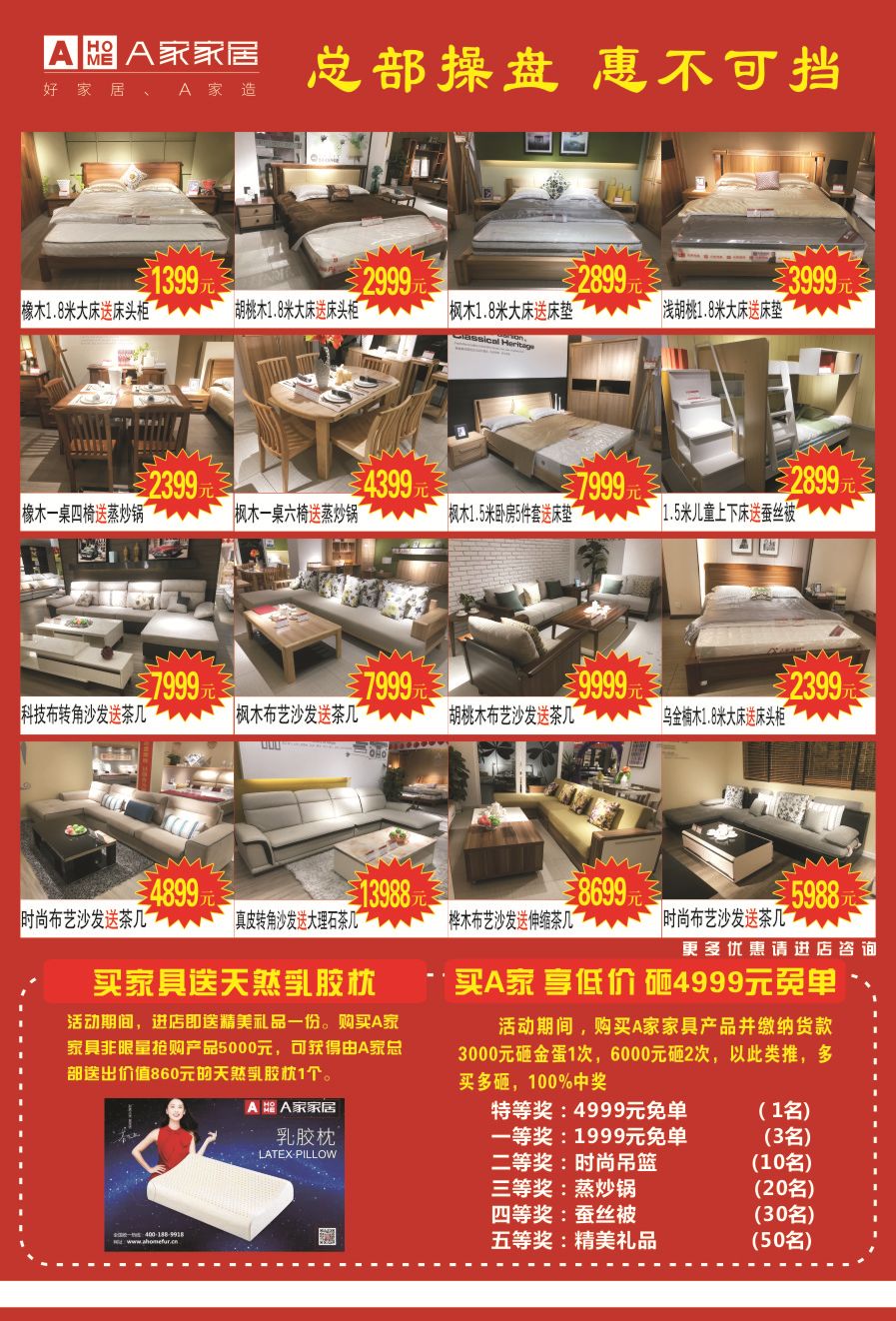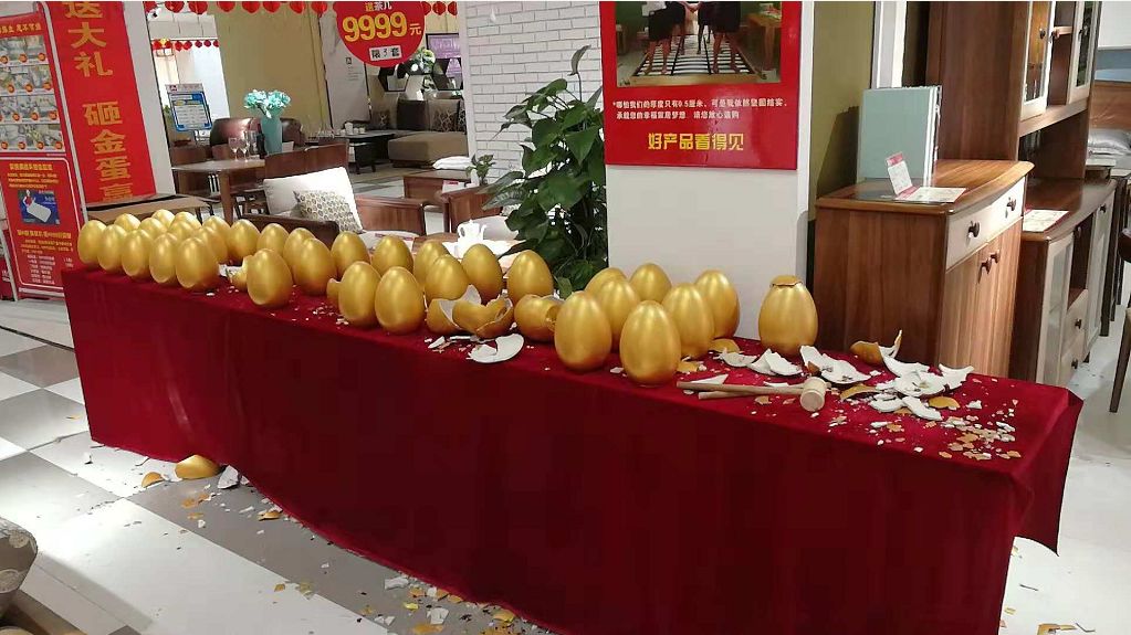 活动期间,购买A家家具产品并缴纳货款3000元砸金蛋1次,6000元2次,以此类推,多买多砸,多砸多中,100%中奖!