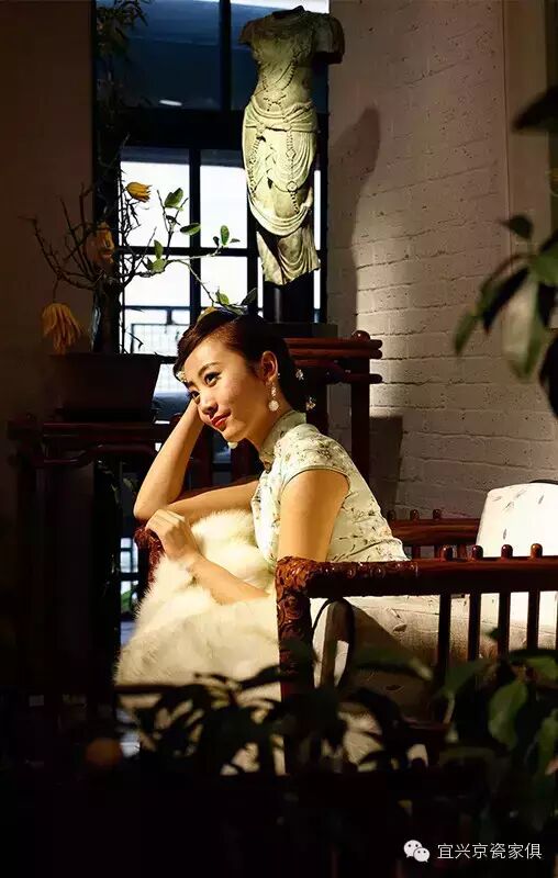 不管是坐的圈椅,木质的茶几,花盆里的绿植都活了起来。