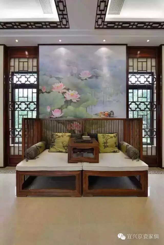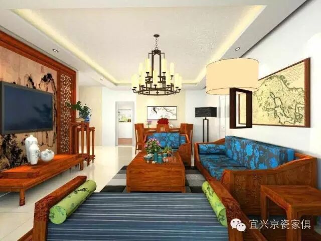 新中式家具在摆放上讲究家具各部分之间留白,如果没有东西去填补它,会产生凌乱、空荡、不整体的感觉。因此,可以考虑放置一些饰品,如古色古香的瓷器、造型别致的花瓶等,可以给人产生了一种视觉缓冲,不会因为家具里浓重的古典气息而感到有些沉重。