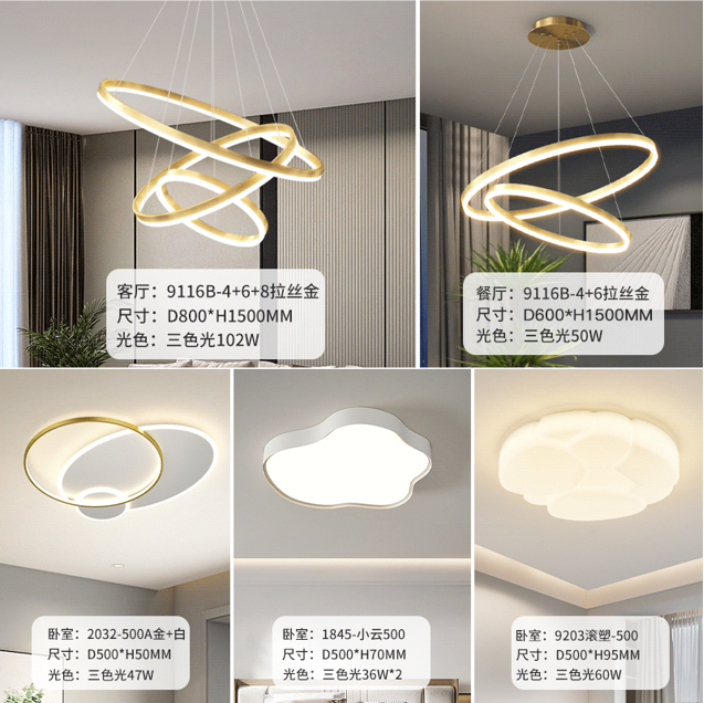 包含:磁吸轨道12米、磁吸聚光灯4个、磁吸泛光灯8个、反光灯槽线性灯30米、防眩射灯20个、卧室宏光照明吸顶灯3个、卧室简约吊线灯3个、智能场景面板4个、液晶屏1个(4寸)、网关1个。欧派全屋定制