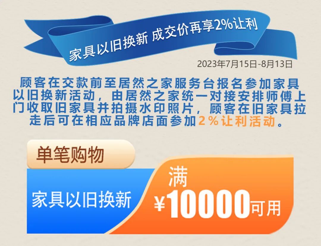 以旧换新还有大优惠↓↓↓注:单笔购物满10000元以上方可参加(仅限成品家具,不含灯饰灯具及林氏木业)。