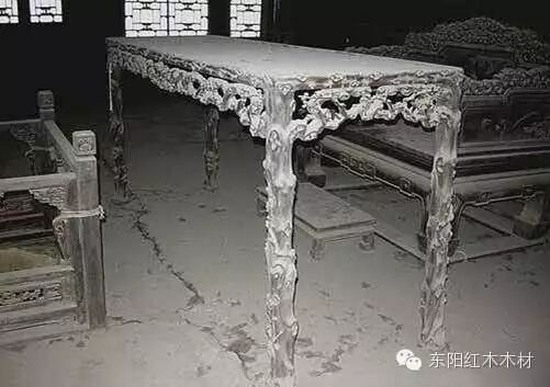 乾隆花园符望阁紫檀雕梅花纹条桌修复前