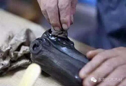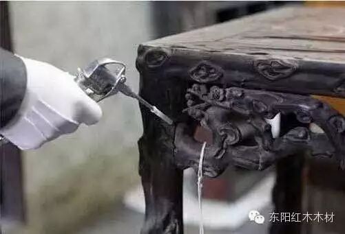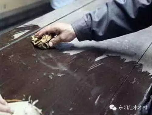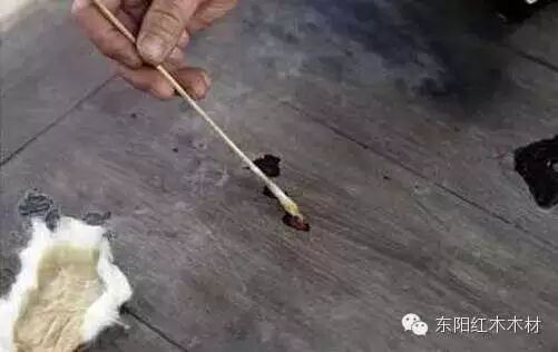 面边严重下垂:桌面面边明显不在一水平面上,采用“刷挖烤骨法”对其进行矫正修复。所谓“刷挖烤骨法”就是在桌的凹面使水,使其潮湿,木材吸收水分后此面会变得膨胀,另一面也就是凸面用热量烘烤,然后对其矫正,直到水平。水平后立即用蜂蜡封上以免再次变形。