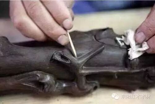 使用液体棉布、鬓刷清除雕刻深处异物: