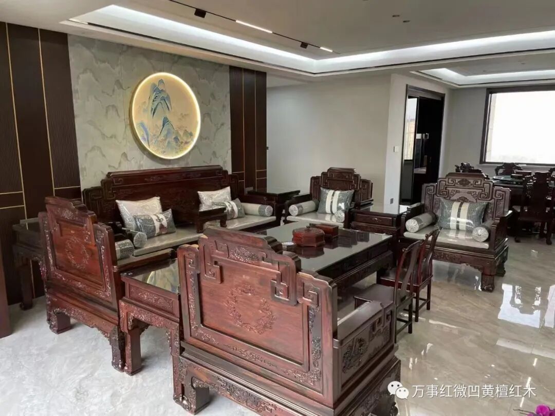 万事红专注高端红木家具二十余年,专营专做红酸枝微凹黄檀精品家具,精选上等红木原材,将古典工艺和现代科技完美结合,在保证高效的情况,万事红木将雕刻、榫卯工艺融入家具生产中,致力于生产有着传世风华的精品红木家具。