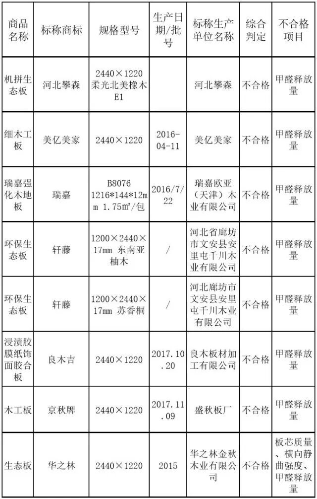 本次江苏工商局公布的木家具抽检不合格名单中,涉及“甲醛释放量”一项商品的具体如下: