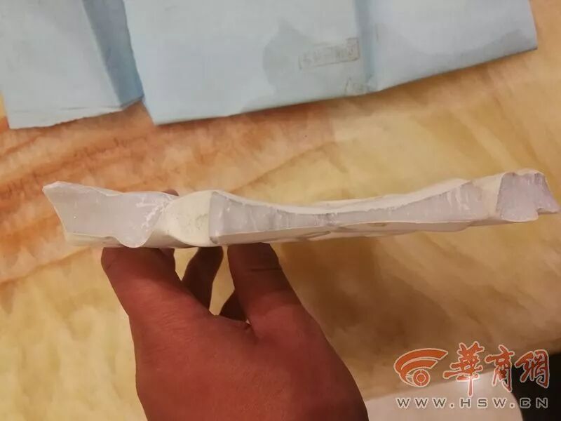 陈先生摔坏的椅子现在还放在客厅,椅背断裂面呈乳白色,上面还有裂纹。