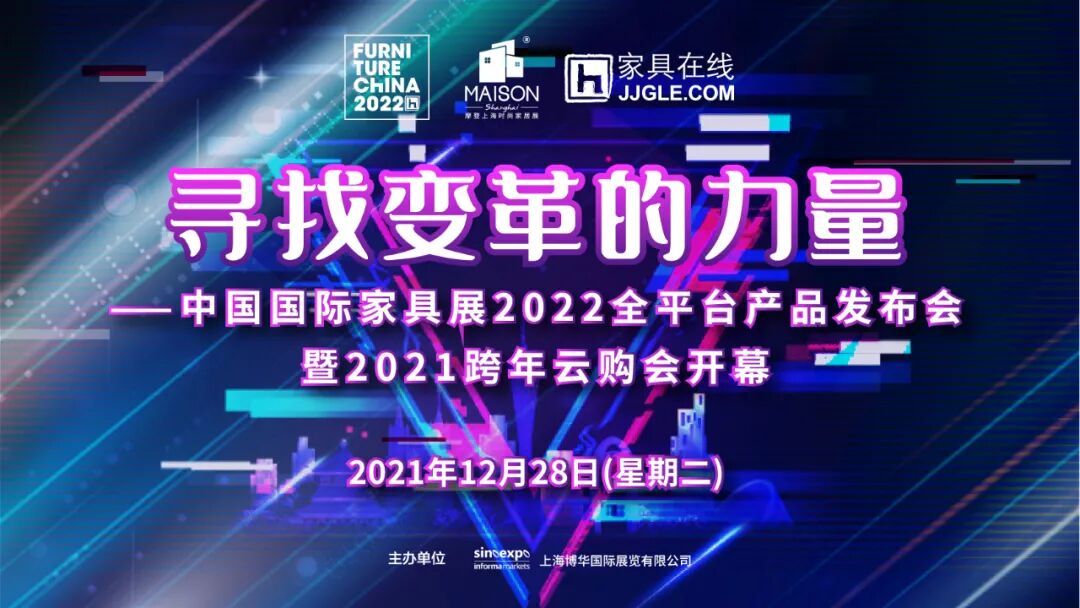 2021-2022寻找家居行业变革的力量,汇聚全球家居人的目光,中国国际家具展跨年云购会,七大活动,五大看点,家居行业携手一起,迎接新的一年。