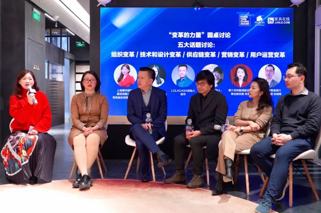 作为此次跨年云购会的开幕活动,内容十分丰富,不仅有“生态共享,全域增长——2022中国国际家具展全平台产品发布“、“‘寻找变革的力量’——中国家居企业标杆案例征集启动仪式”,还进行了“变革的力量”主题圆桌讨论,多位行业大咖就“组织变革”、“技术和设计变革”、“供应链变革”、“营销变革”、“用户运营变革”五个方面进行探讨。