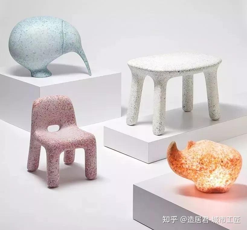 比利时的玩具品牌 EcoBirdy,利用塑料再生新材料制作了一套颜色绚丽、轻便实用的儿童家具。