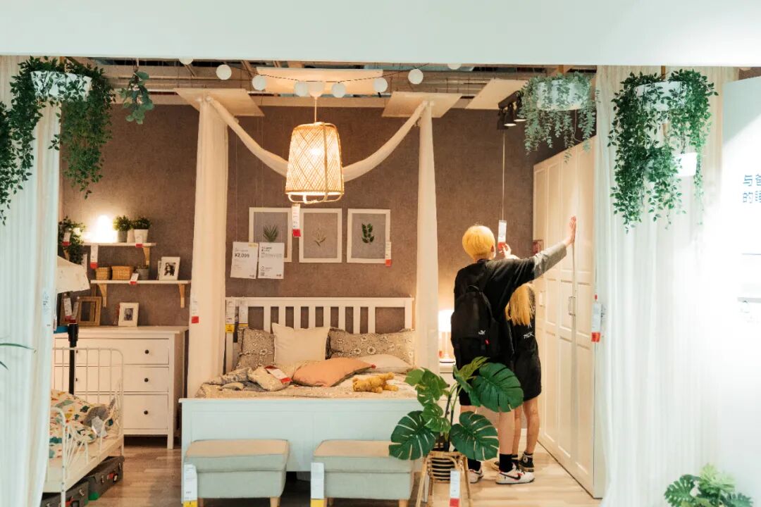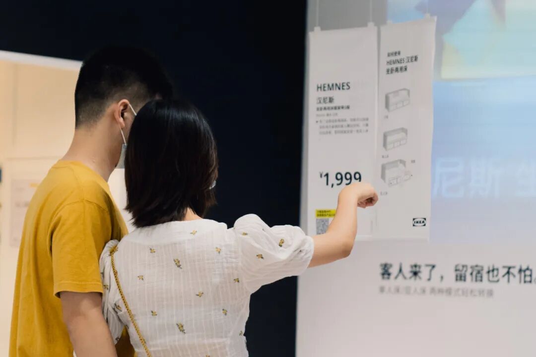 他们会站在一个衣柜前,讨论装修配色的搭配;并且满打满算消费多少钱,可以用上宜家的免费送货服务。
