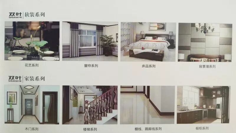 双叶产品包括餐厅、卧房、书房、客房、宾馆、办公、家装、饰品、实木复合地板等九大系列近300多个品种,产品销往全国各地以及欧、美、日等国家。