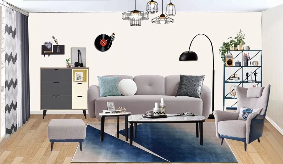 本次软装方案使用的同款沙发为型号RAM2K灰色款,别以为他圆嘟嘟的可爱造型就只能做可爱feel,通过不同的色彩软装,也能搭配出不一样的家居feel哦~
