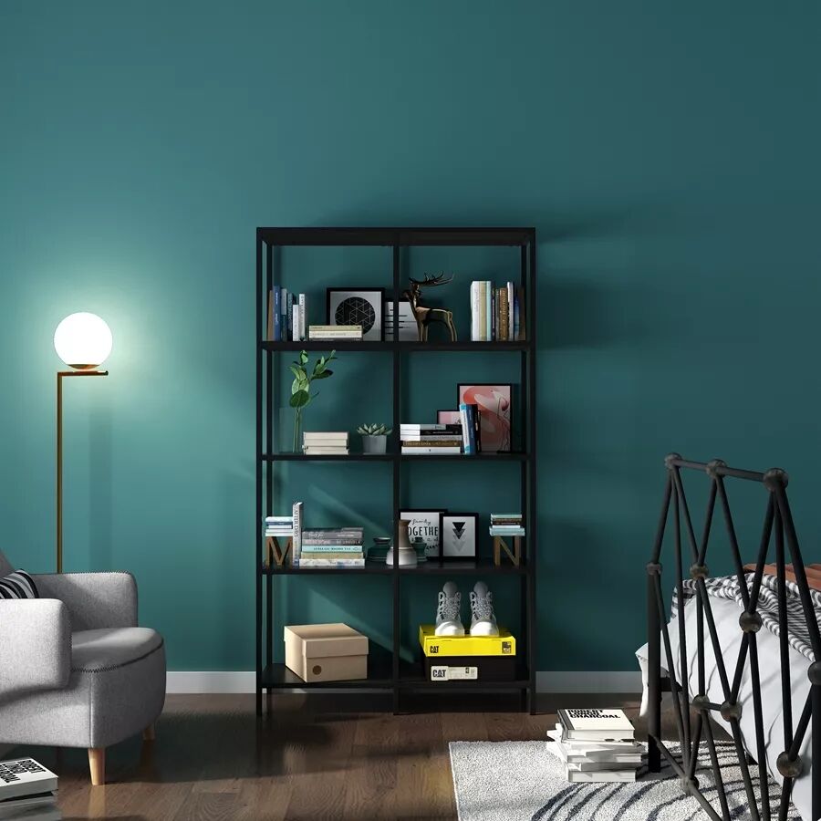 虽然在本案中大量使用了蓝色色块,但嘚嘚地偷偷告诉你,最点睛的还是那统一抹黑色,细细看会发现本案中所有家具脚、灯饰、书架都是统一的黑色,暗暗中与幽深的蓝色一起营造出干练感。