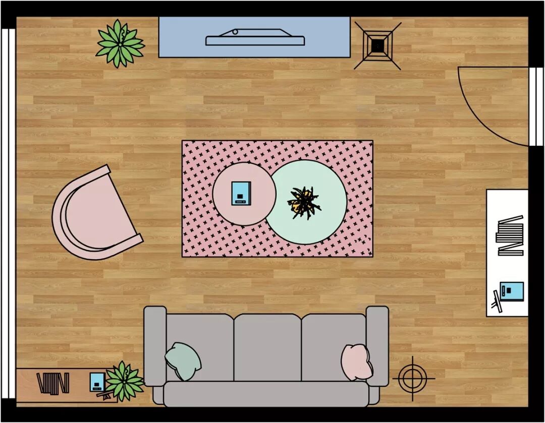 那这时候,可以用一张美腻的地毯与挂画,大大抢夺视觉关注点,奠定了基础就可以大肆地做自己喜欢的搭配。