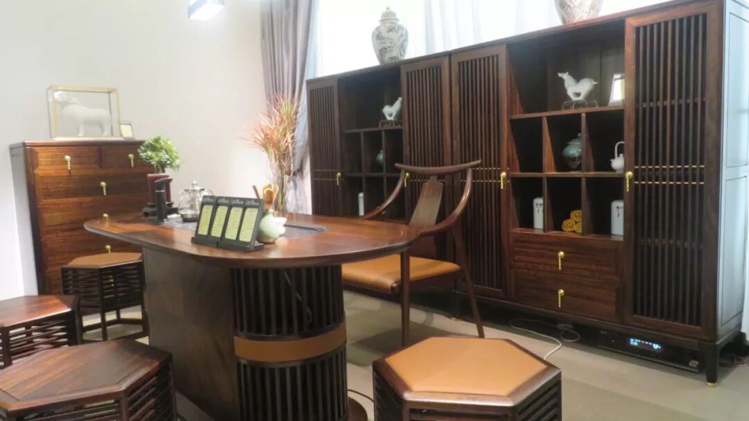 “辰起东方,轻奢中式”--东辰精心撷取进口黑檀木,加以皮质,五金等创新设计,重新定义并诠释新中式家具。