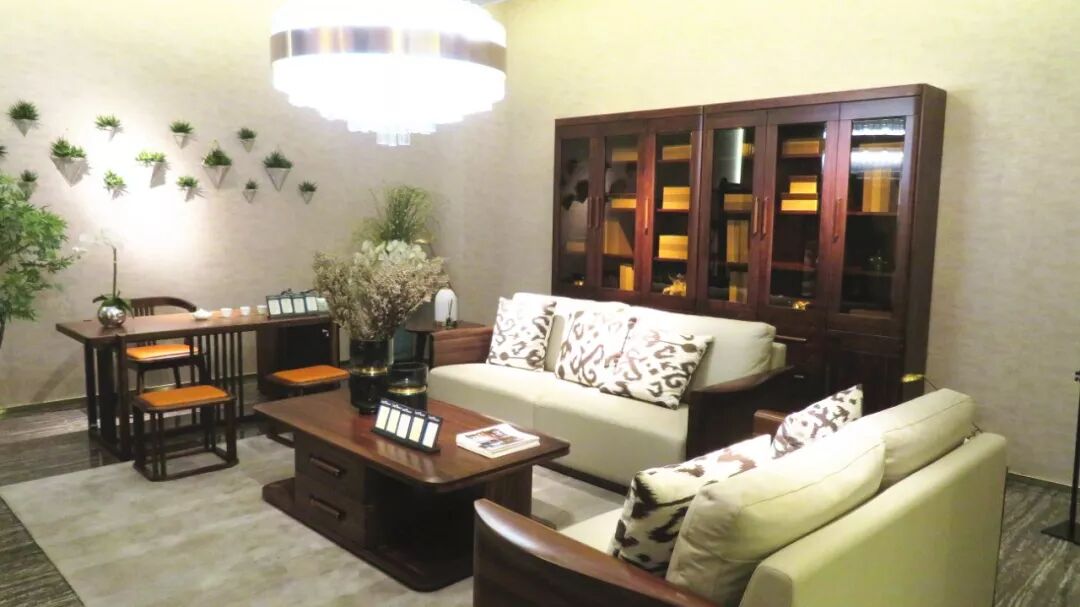 走进赖氏家具旗舰店,首先映入眼帘的是展示于门店一层的胡桃大师、乌金名作两个系列的家具。