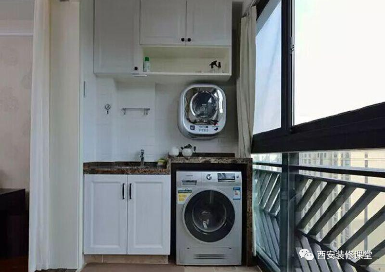 ▲再比较一下阳台放置洗衣机直接放置和采用定制的方法,完全是天地之差,一个是凌乱不堪,一个是井井有条,优缺点非常明显
