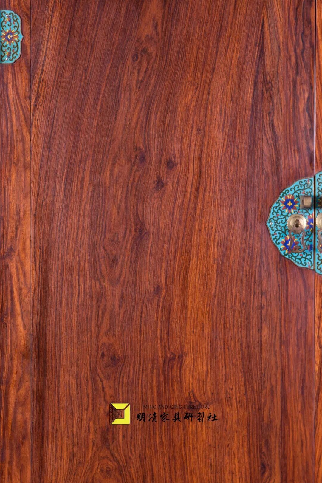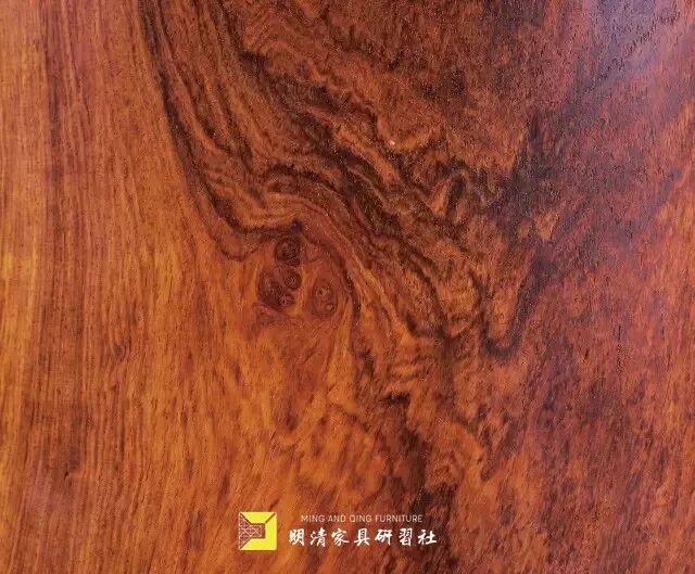 黄花梨木的棕眼细密、松动,聚散无常, 因而给人以灵活、无拘无束的美的启示。