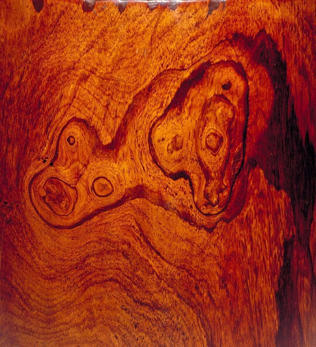 特别是黄花梨木常有节疤,这些节疤大多是活节活疤,而且形态各异,或像猴头、鬼脸,正如《格古要论》所说:“鬼脸”,“狸面”者是,随节付形,活泼可爱。也为黄花梨木生色匪浅。
