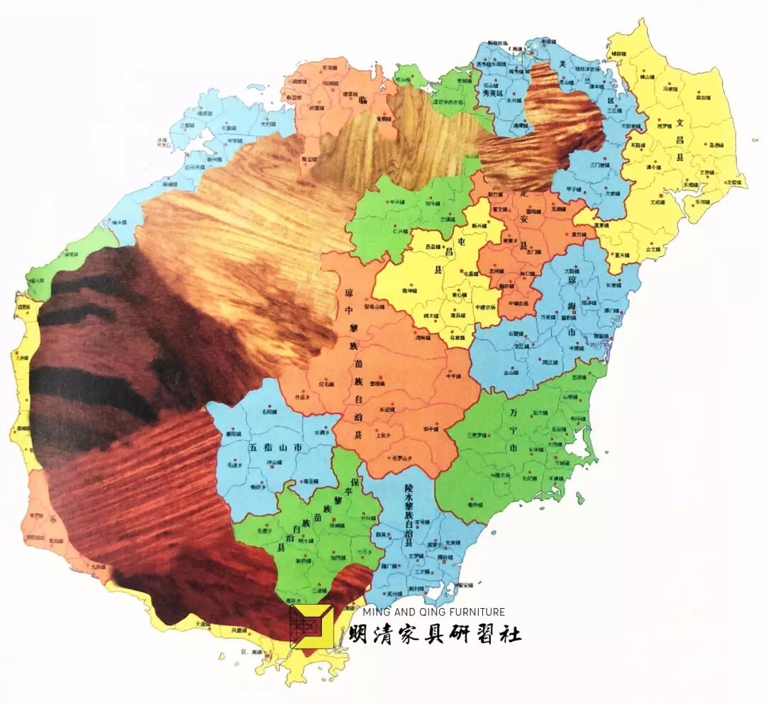 明式家具用材甚多,紫檀、乌木、溪鸟勅鸟木、铁梨木、榉、柏、樟、楠……而以黄花梨木为最美。《格古要论》说:“花梨木出南蕃、广东。”成俊卿《中国热带及亚热带木材》以及侯宽昭《广州植物志》对黄花梨木都有记述,认为产于海南省的降香黄檀就是明代及清初大量用以制造高级家具的黄花梨。其特性:“为森林植物,喜生于山谷阴湿之地,木材颇佳,边材色淡,质略疏松,心材红褐,坚硬,纹理精致美丽。”