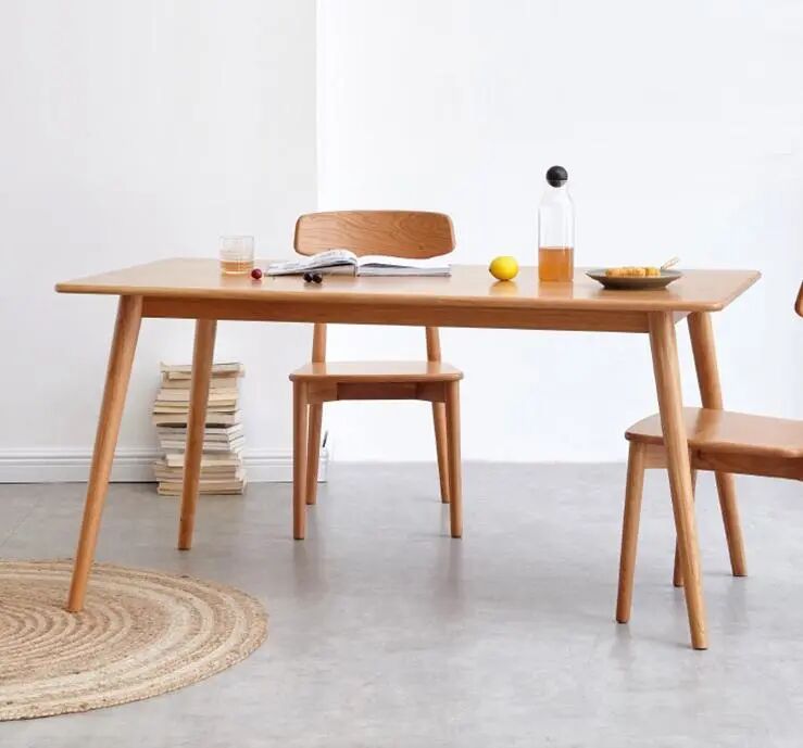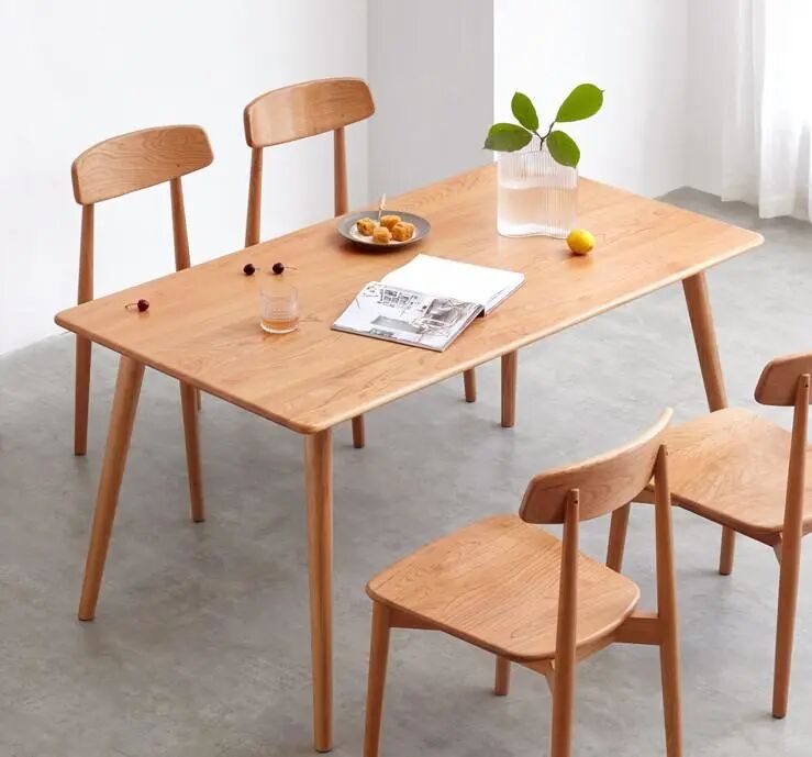 非常漂亮的樱桃木餐桌,色泽细腻带点橘红色,造型做的非常轻薄纤巧,通体圆润打磨不磕手脚,简约而不简单,适配各种家装风格。