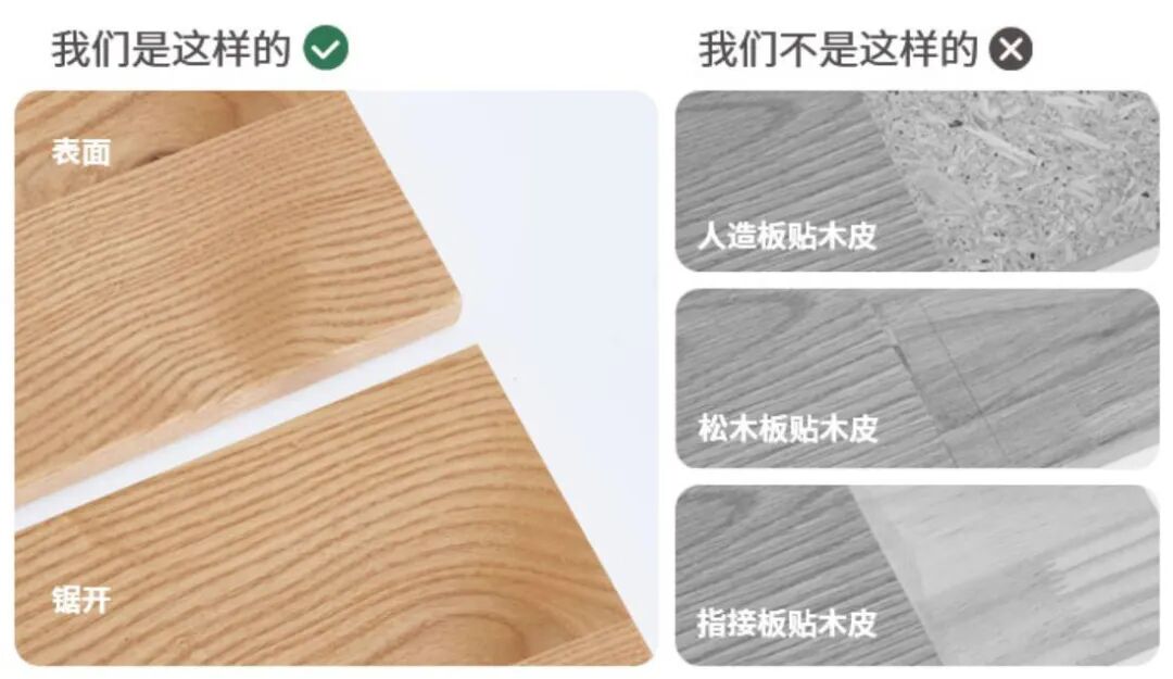 而且只采用纯实木大板直拼,拒绝刨花板、多层板、贴皮板、指接板等“假实木”,板材更宽更大,稳固结实,用胶量极少。