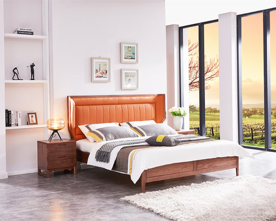 卧室是我们日常生活中最为放松的地方,选择一款适合自己的实木床,既有格调同时又不失舒适感。简洁大方的造型设计,随意搭配一些床品都可以营造出一种温馨浪漫的感觉。自然的纹理环保健康,可以让你释放出日常工工作上的压力。实木的材质经久耐用,可以增加使用寿命。