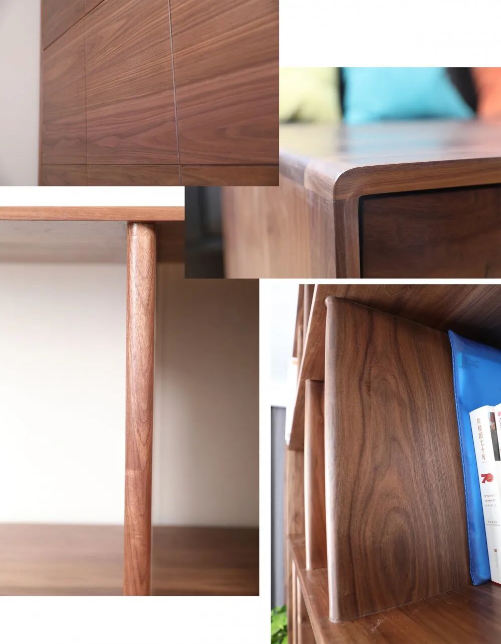 全屋北美黑胡桃家具,无钉无漆榫卯结构,风格简约却质感惊艳,落地效果秒杀效果图百倍,这是好的实木家具独有的特点。